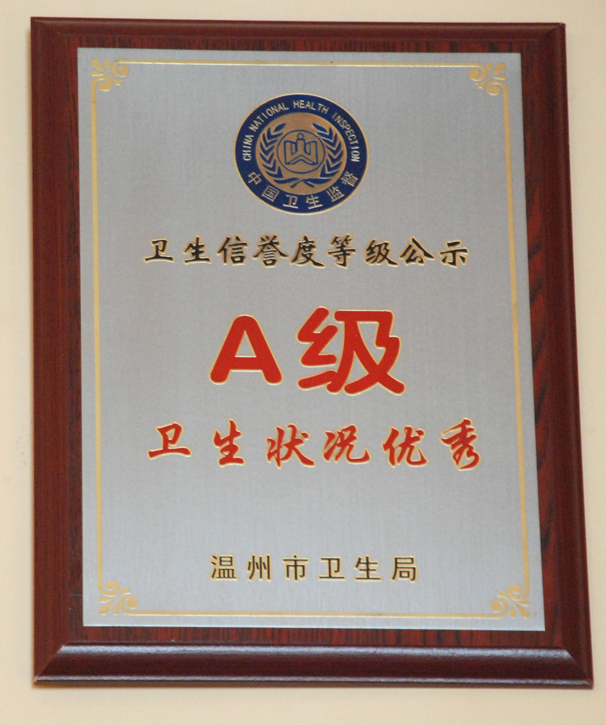 近日,由温州市卫生局开展的餐饮业食品卫生信誉度等级评定中, 温州滨海大酒店荣获了“卫生信誉度等级A级”的殊荣。