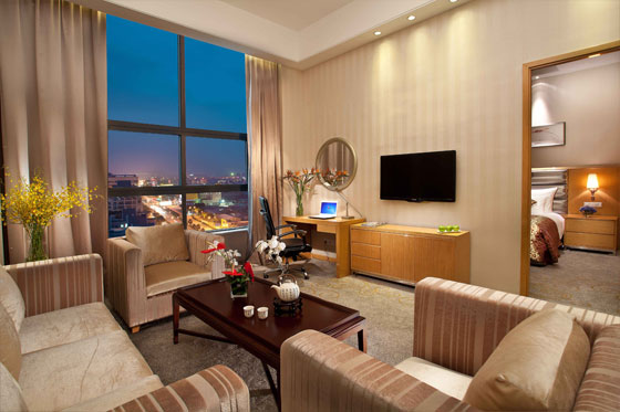 酒店A幢主楼拥有各种类型客房235间(套),包括高级房10间,豪华单人房73间,豪华双人房87间,行政单人房41间,行政双人房1间,豪华行政套房17套,商务套房5套,总统套房1套。酒店十一楼为行政楼层,十楼为无烟楼层,行政楼层每间客房均配备高速宽带上网电脑。