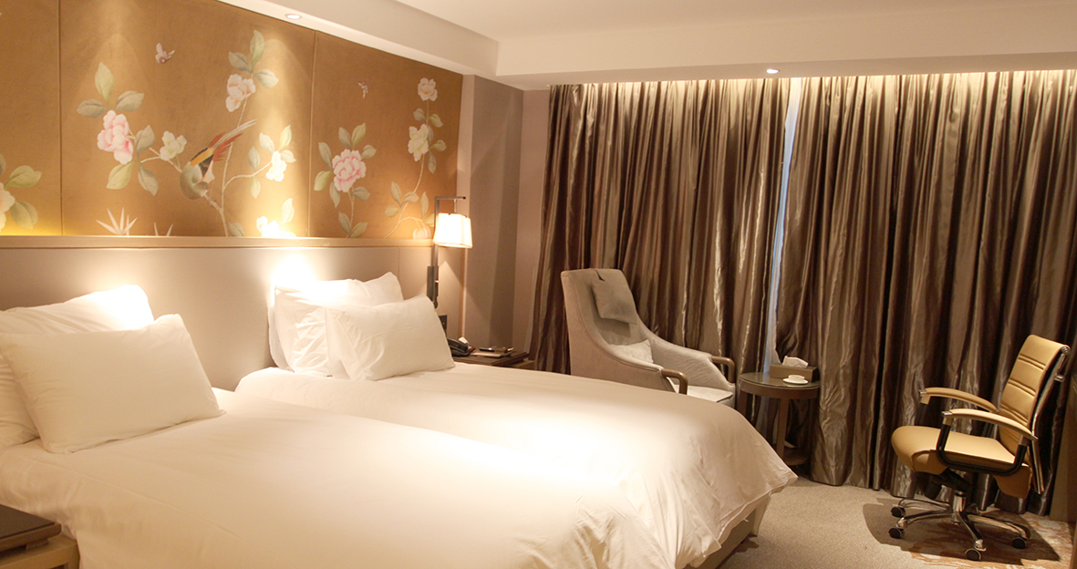 酒店C栋迎宾楼拥有豪华单人房、双人房、套房等各类舒适的客房123间(套)。房间内设光纤网络、全天候中央空调、多频道卫星电视,国内(外)长途电话等设施;提供洗衣服务、客服送餐服务、免费报纸服务、免费咖啡等服务。